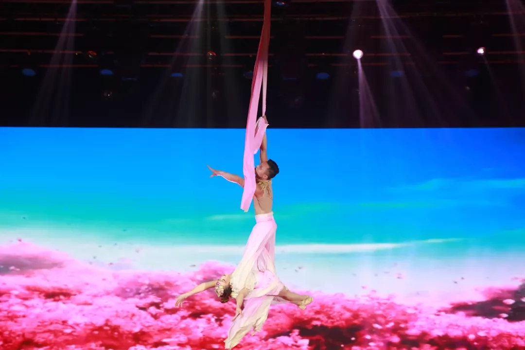 來自長沙銀行的特別嘉賓也為大家?guī)砹藷嵫序v的歌曲表演,晚會(huì)還特別邀請(qǐng)長春大學(xué)音樂學(xué)院的教授、著名的歌唱家張卓先生以及獲第38屆蒙特卡洛國際馬戲節(jié)“銀小丑獎(jiǎng)”的雜技團(tuán)隊(duì),分別為大家?guī)砹舜髿獍蹴绲母璩硌菀约绑@險(xiǎn)刺激的飛天綢吊雜技,將晚會(huì)氣氛推向了高潮。