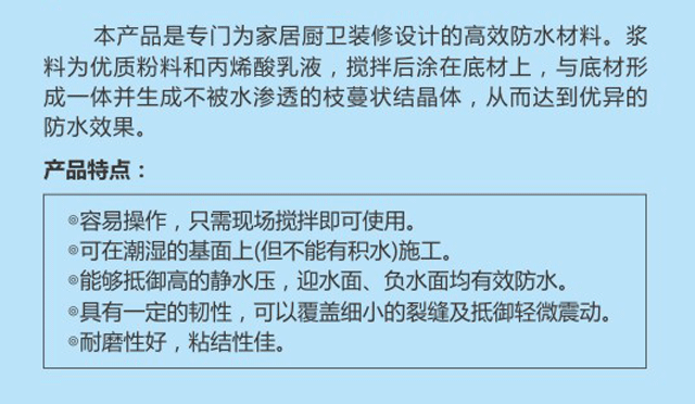 您現(xiàn)在的位置:首 頁(yè) > 產(chǎn)品展示 > 廚衛(wèi)型防水漿料